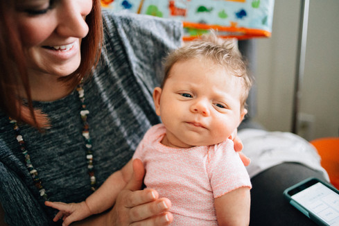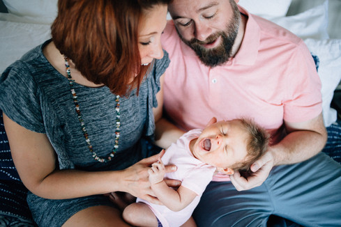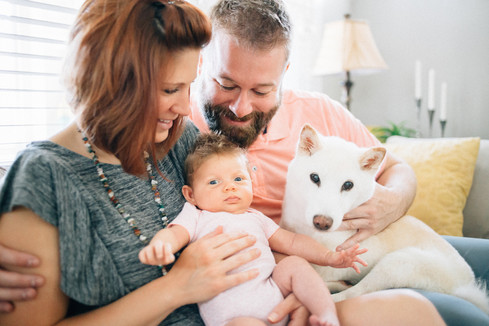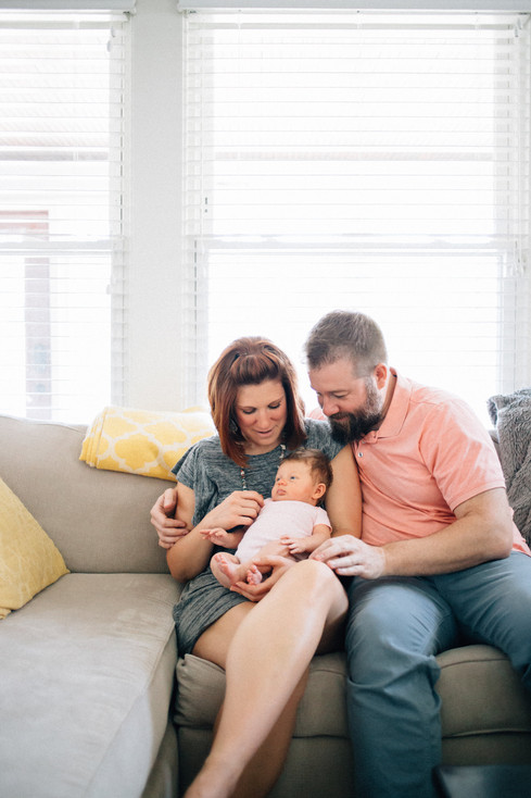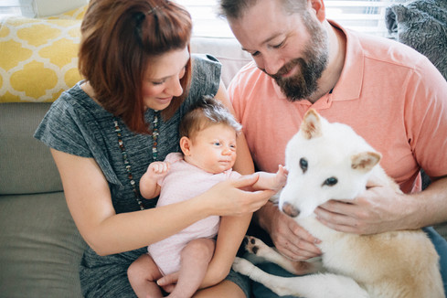 On a sunny morning in May, I parked my car on a small street in the Chicago 'burbs and walked the sidewalk, enjoying the quiet and taking in the little row of houses. I walked up the steps to the porch and rang the bell. The thing that always takes me off guard is how easy and gracious people are. I mean, it's not like I assume anyone is going to outright rude the moment I first shake their hand, but it always takes me by surprise how smooth it always goes in spite of my nervousness. H, Beatrix's dad, came to the door and we shot the breeze for awhile, talking about mutual friends, jobs, paternity leave, and his sweet canine pal, Zeus. Beatrix was upstairs with her momma, getting in one last feeding before the session started. After grabbing a few pictures of Zeus and a few details of inside their home, I moved on upstairs. Now, babies never, ever sleep through an entire session, (well, okay, that happened ONCE, but see? it's rare) and Beatrix was no exception. Since she was feeling pretty awake (and just a tinge fussy) I started the session with her all cozied in mom and dad's arms. They were glowing, and I had to do pretty much no directing. You don't really have to coach new parents who are in love with their little...sweet moments just happen. And that makes my job *incredibly* easy. We took a few nursing/burping breaks, had a few outfit and diaper changes, got out some heirloom blankets, and talked about Beatrix's birth story. It's crazy to me that this session took place almost 5 months ago! Beatrix, you have some pretty cool parents, and your sweet little self compliments them perfectly!
